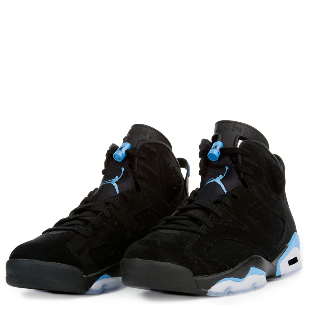 Air Jordan 6 Retro 'UNC' | GOAT Released in December 2017, the Air Jordan 6 Retro 'UNC' paid tribute to North Carolina's 2017 NCAA win. The colorway comes with a black nubuck upper with University Blue on the tongue, Jumpman, lacelock, and back pull tab. The shoe also comes with University Blue accents on the midsole and translucent rubber on the outsole.