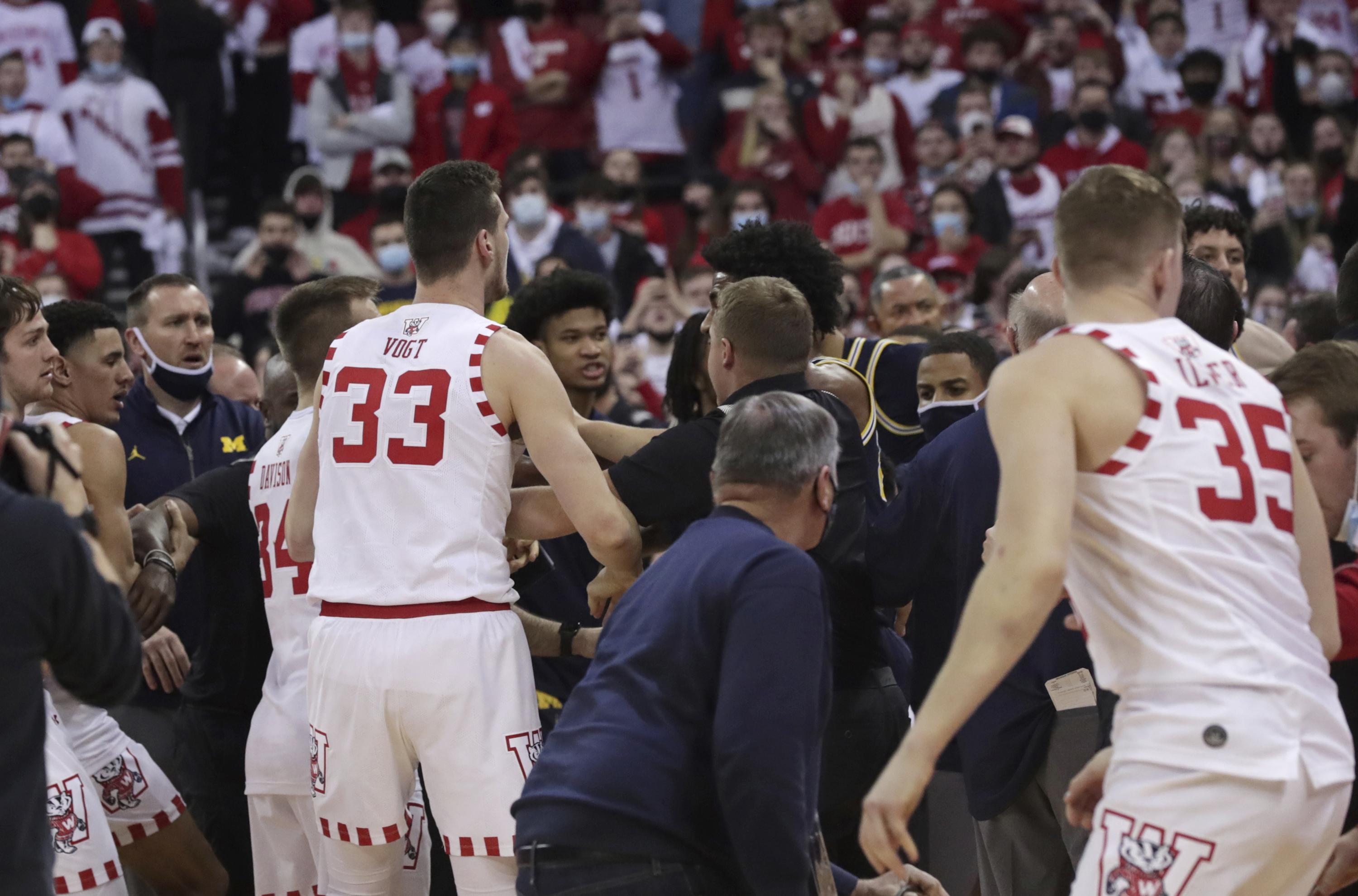 College Coach Brawl: Michigan Considers Disciplinary Action After... Michigan head coach Juwan Howard reacts after Michigan was whistled for a foul during the The Conference, which includes both Michigan and Wisconsin, said in a statement it will "take swift and...